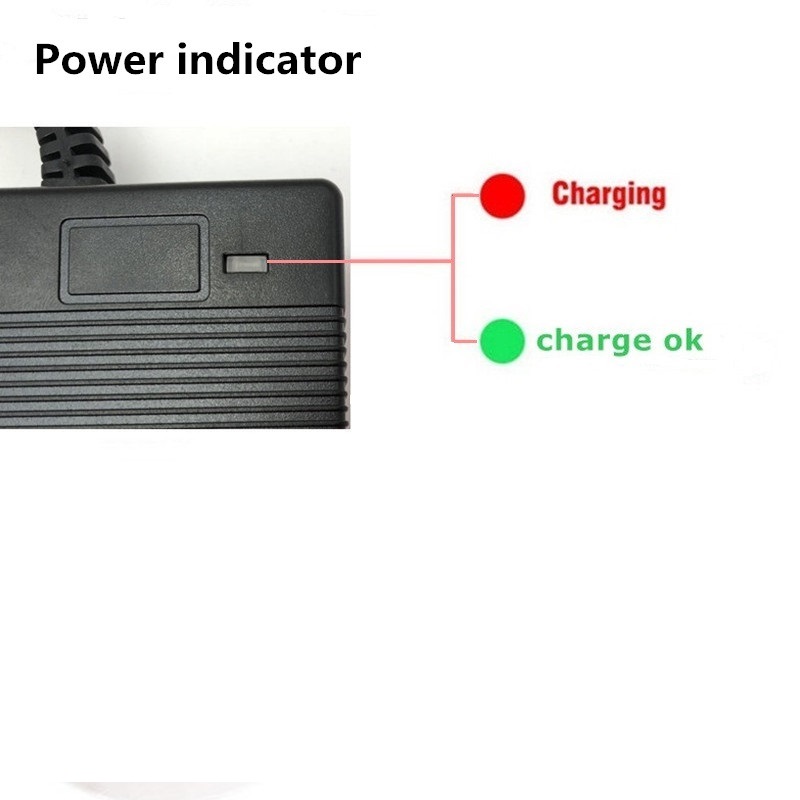 Charger instructions: Simply plug the charger into the wall. You will see the light turn green. Now plug the other end of the charger into your battery. You will see the light turn red, indicating charging. When the light turns green again, your battery is finished charging! You can leave the battery plugged in now if you like (nothing is happening, the charging has stopped and there is no trickle charge) but its good practice if you unplug the charger from both the battery and the wall when you’ve finished charging.